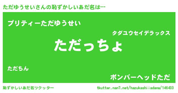 | 意味不明あだ名 | 『住所不定無職ただゆうせい(40歳)』 |