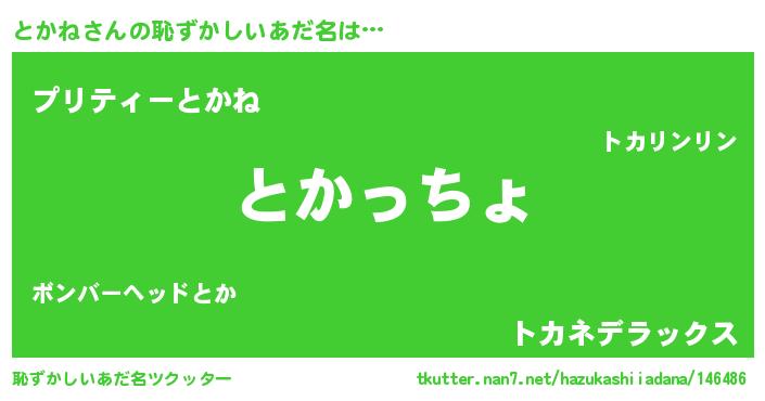 ヘコむあだ名 | 『つくし』『とかにゅー』 |