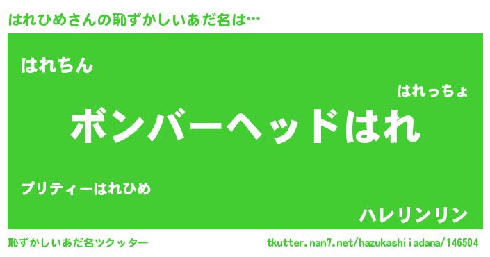 | ヒーロー風カッコイイあだ名 | 『正義の使者はれひめ』『仮面ハレダー』 |