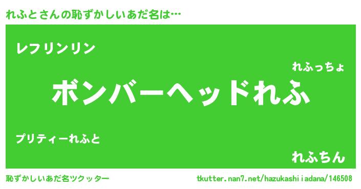 | 意味不明あだ名 | 『ヨモギ科れふと属』『永久保存れふと』 |