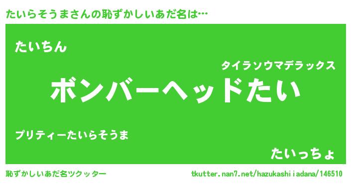 | ヒーロー風カッコイイあだ名 | 『正義の使者たいらそうま』 |