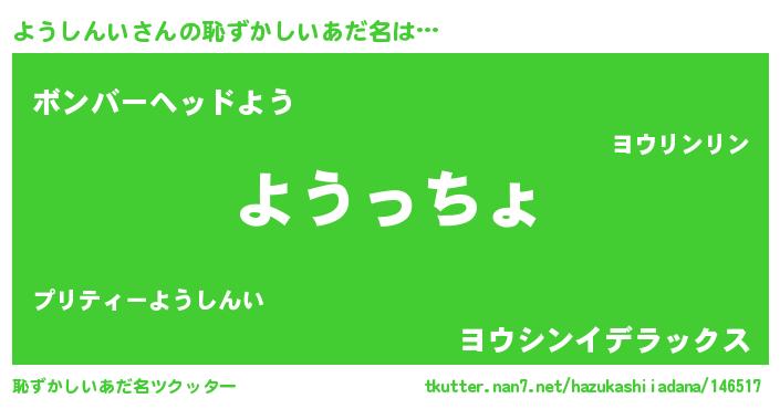 | 意味不明あだ名 | 『ようしんいフォーエバー』 |