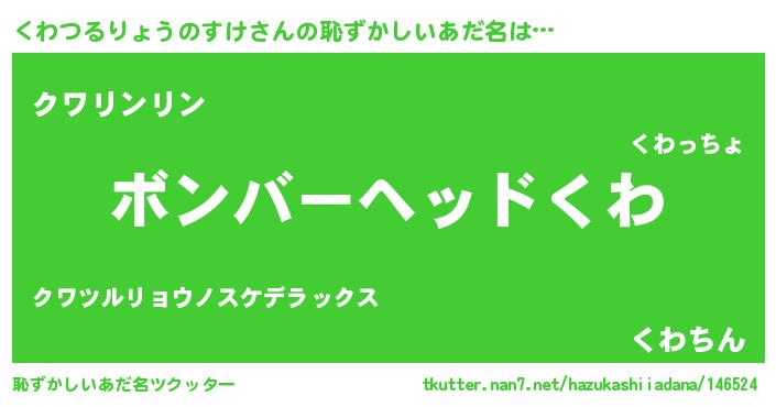 | ヘコむあだ名 | 『くわっ子』『くわつるりょうのすけ(爆)』 |