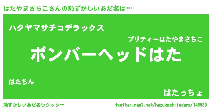 | ヘコむあだ名 | 『豆乳』『はたふぇ~』『はたっぺ』 |