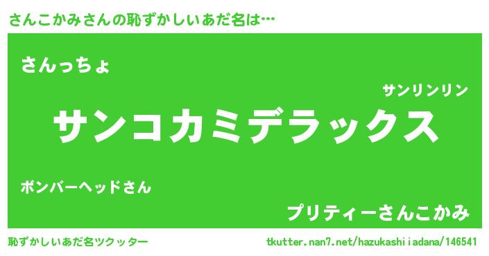 | 男性向けラノベタイトル風あだ名 | 『この素晴らしい世界にさんこかみを!』 |