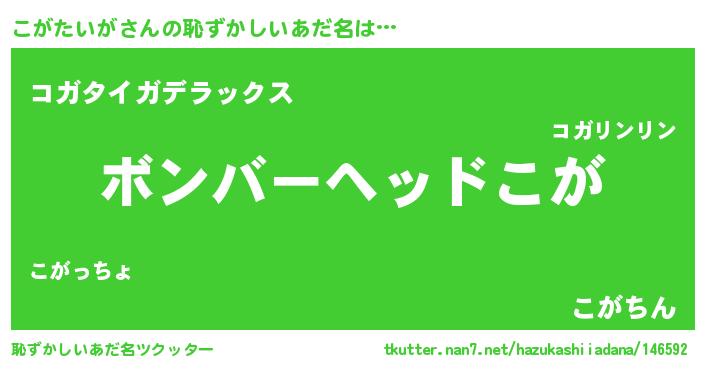 | ヘコむあだ名 | 『こがたいが(爆)』『こがっちょ』 |