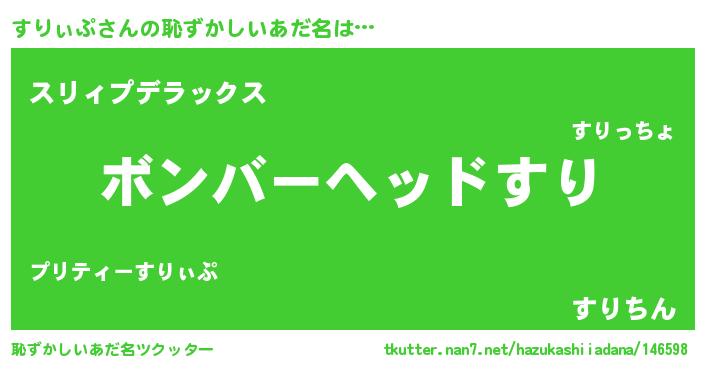 | 意味不明あだ名 | 『つくし科すりぃぷ属』『自称すりぃぷ』 |