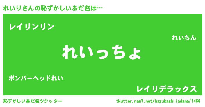 | ヘコむあだ名 | 『レバニラ』『れいを』『れいり(笑)』 |