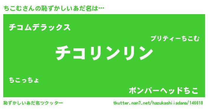 | 意味不明あだ名 | 『とにかく怪しいちこむ』『自称ちこむ』 |