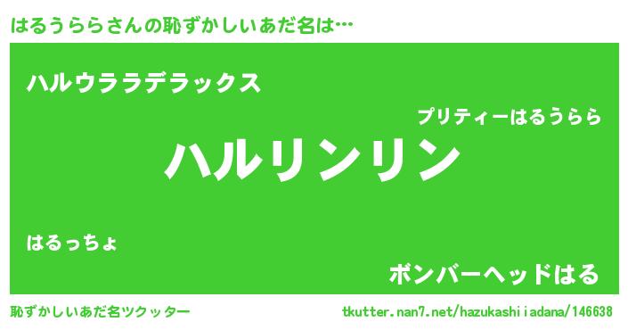 | ポケモン風あだ名 | 『ヒハルウララ』『ハルセウス』 |