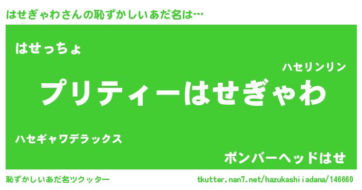 | ファンタジー風あだ名 | 『ハセフェル』『エターナルハセギャワー』 |