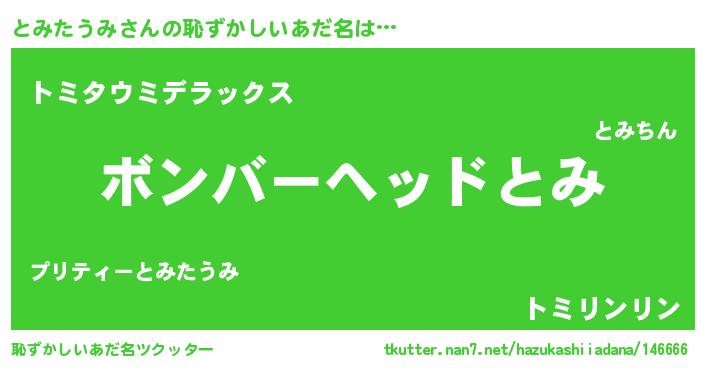 | ヘコむあだ名 | 『とみっぺ』『とみたうみ(笑)』 |