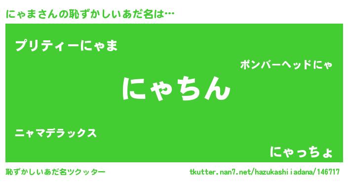| ヘコむあだ名 | 『にゃま(苦笑)』『にゃっふぃ~』 |