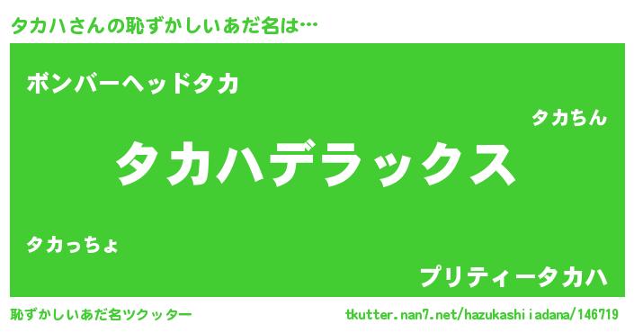 | ヒーロー風カッコイイあだ名 | 『仮面タカダー』『超時空戦士タカハ』 |
