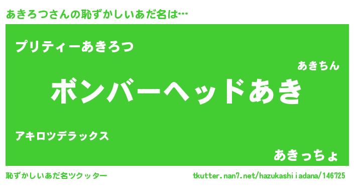 | ヒーロー風カッコイイあだ名 | 『慈愛の使者あきろつ』『ネオアキロツ』 |