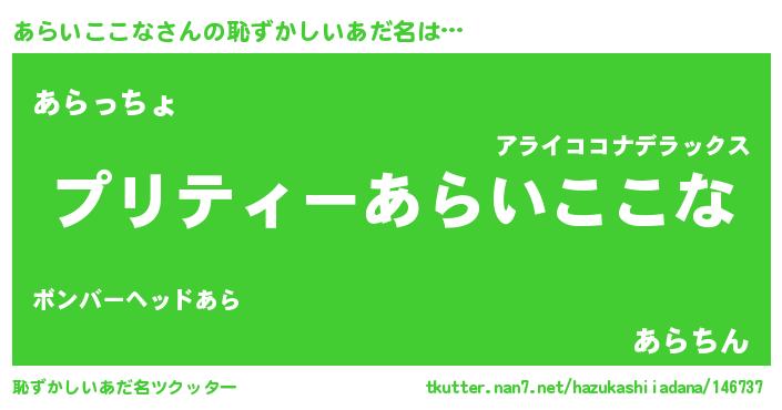 | 欧米人風あだ名 | 『あらいここな・ステッグマイヤー』 |