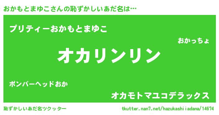 | 男性向けラノベタイトル風あだ名 | 『魔弾の王とおかもとまゆこ』 |
