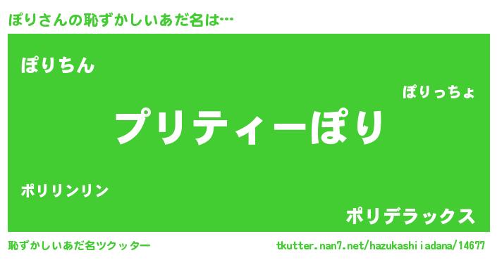 | 胡散臭い通販商品みたいなあだ名 | 『億万長者になれる霊験あらたかなお札…その名も「ぽり」』 |