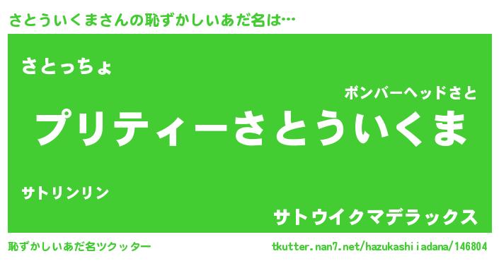 | ヒーロー風カッコイイあだ名 | 『スーパーサトウイクマ』『炎刃騎士サト』 |