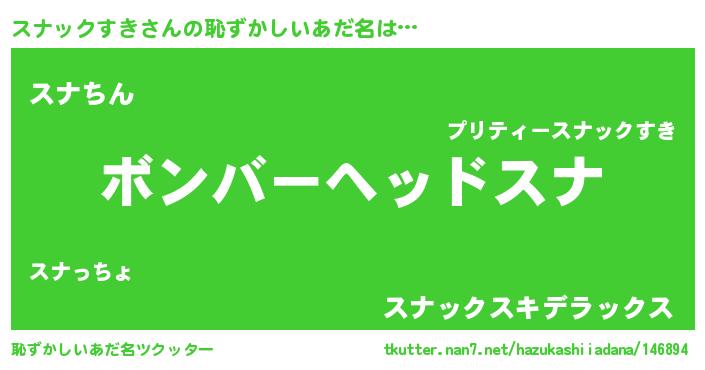 | 意味不明あだ名 | 『住所不定無職スナックすき(13歳)』 |