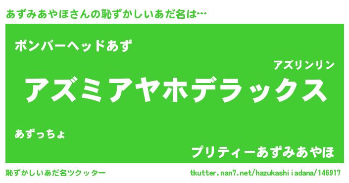 | 意味不明あだ名 | 『自称あずみあやほ』 |