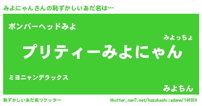 | 欧米人風あだ名 | 『マイケルみよにゃん』 |