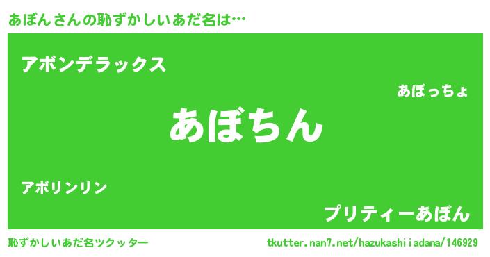 | 意味不明あだ名 | 『住所不定無職あぼん(12歳)』『自称あぼん』 |