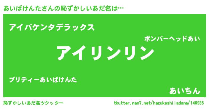 | 意味不明あだ名 | 『とにかく怪しいあいばけんた』 |