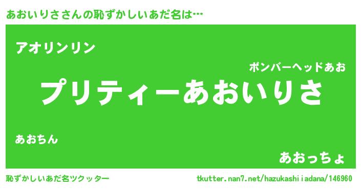| 胡散臭い通販商品みたいなあだ名 | 『億万長者になれるブレスレット…その名も「あおいりさ」』 |