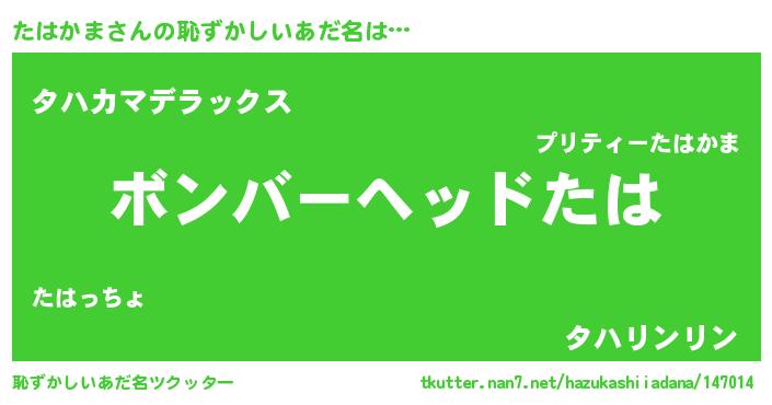 | 欧米人風あだ名 | 『ダニエルたはかま』『ウサインたはかま』 |