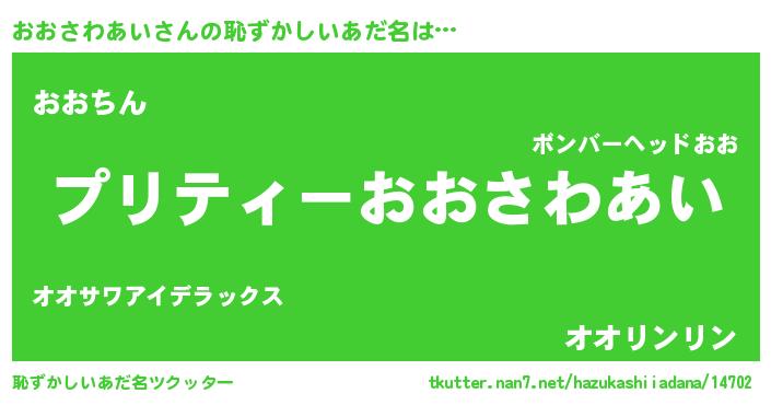 | ヒーロー風カッコイイあだ名 | 『スーパーオオサワアイ』『銀牙騎士オオ』 |