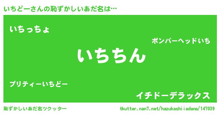 | ヘコむあだ名 | 『いちどー(苦笑)』『豆乳』 |