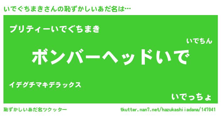 | 男性向けラノベタイトル風あだ名 | 『魔弾の王といでぐちまき』 |