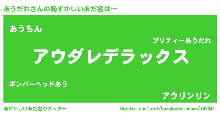 | 意味不明あだ名 | 『自称あうだれ』『永久保存あうだれ』 |