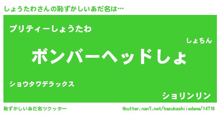 | 男性向けラノベタイトル風あだ名 | 『ノーゲーム・ノーショウタワ』 |