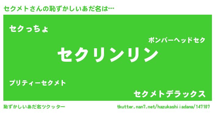 | 意味不明あだ名 | 『住所不定無職セクメト(12歳)』 |