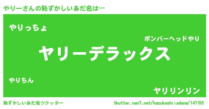 | 男性向けラノベタイトル風あだ名 | 『Re:やりーから始める異世界生活』 |