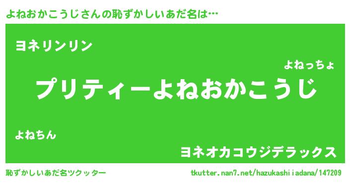 | 意味不明あだ名 | 『住所不定無職よねおかこうじ(93歳)』 |