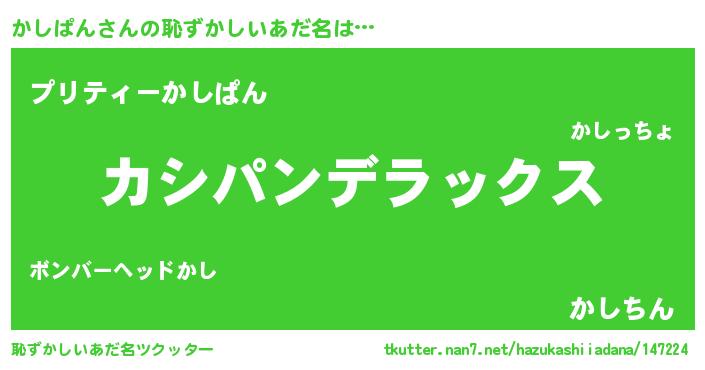 | 男性向けラノベタイトル風あだ名 | 『Re:かしぱんから始める異世界生活』 |