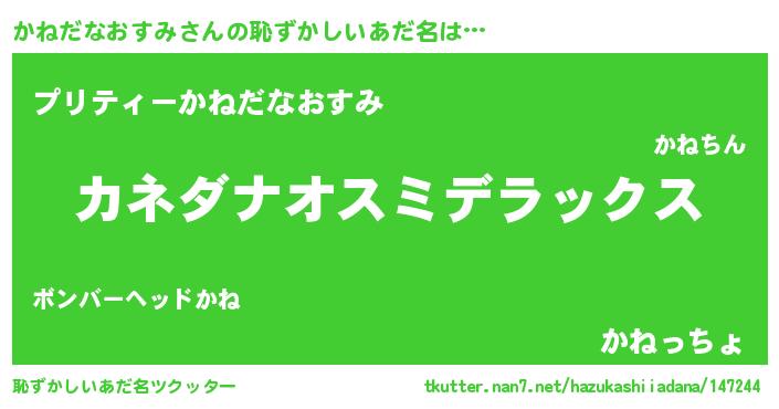 | 意味不明あだ名 | 『自称かねだなおすみ』 |