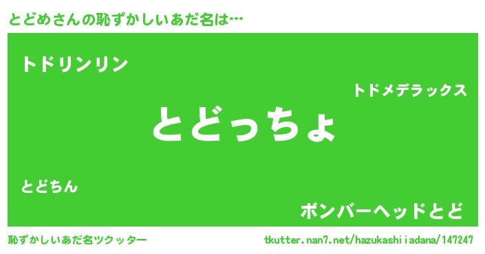 | 意味不明あだ名 | 『住所不定無職とどめ(6歳)』 |