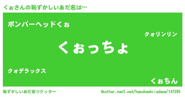 | 意味不明あだ名 | 『住所不定無職くぉ(47歳)』『永久保存くぉ』 |