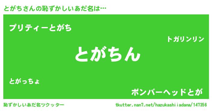 | ヘコむあだ名 | 『とがち(笑)』『とがもー』『とがを』 |