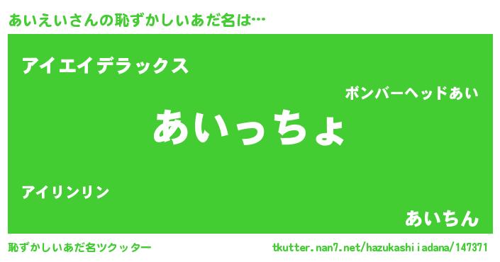 | ヒーロー風カッコイイあだ名 | 『仮面アイダー』『ウルトラあいえいマン』 |