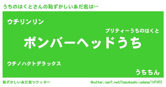 | 意味不明あだ名 | 『住所不定無職うちのはくと(50歳)』 |