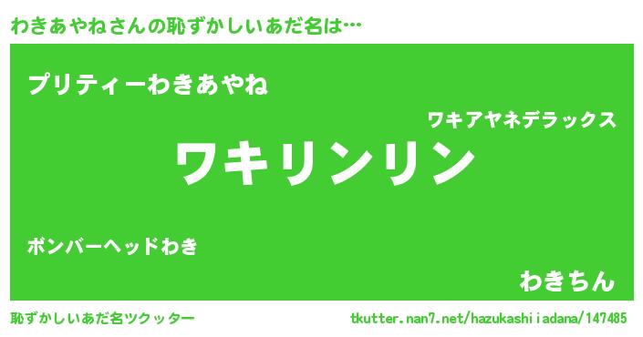 | 可愛いあだ名 | 『わきぷりん』『わっきぃー』 |