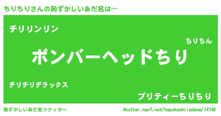 | ヒーロー風カッコイイあだ名 | 『慈愛の使者ちりちり』『暗黒騎士チリ』 |