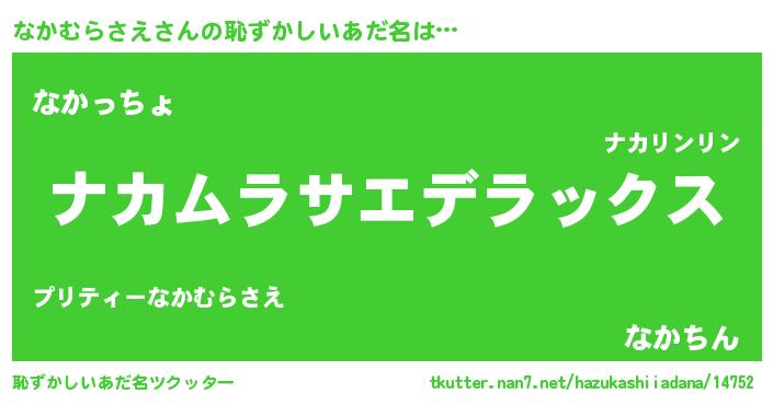 | ヒーロー風カッコイイあだ名 | 『究極戦士ナカムラサエ』『仮面ナカダー』 |