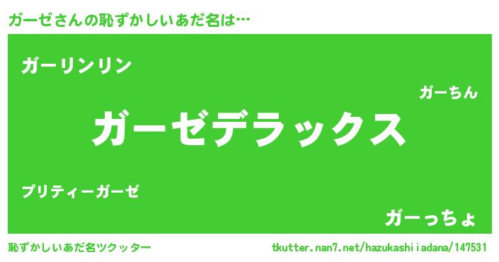 | 男性向けラノベタイトル風あだ名 | 『緋弾のガーゼ』『魔弾の王とガーゼ』 |