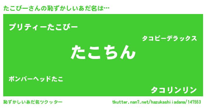 | ヘコむあだ名 | 『たこぴー(爆)』『たこもー』 |